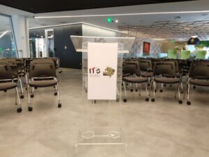 Palestras, Reuniões, Convenções, Inaugurações dentre outros eventos. Aluguel de Púlpito (transparente)Púlpito com Acessórios: prateleiras em acrílico cristal, mesa e base
