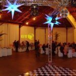 A projeção de logomarca é feita via Moving Head um equipamento moderno e sofisticado.
