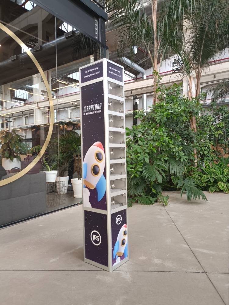 Os Totens Carregadores Coletivos para Celulares também podem ser são personalizados com a sua comunicação visual, porém, o investimento é maior.
